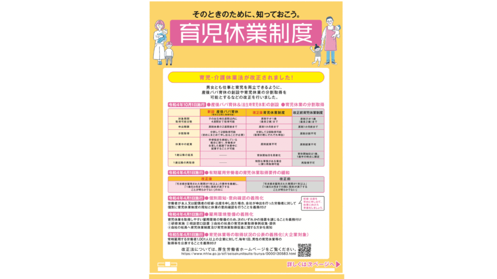詳しくは厚生労働省の育児休業の特設サイトを参照ください。