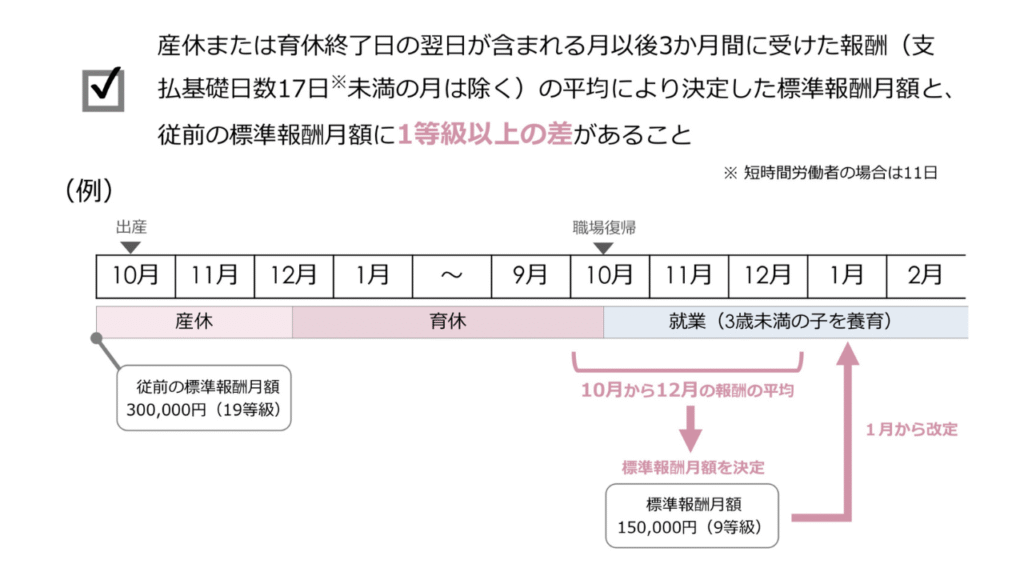 これにより、実際の収入に合わせて早めに保険料が調整されるため、復帰直後の給与に見合わない高額な保険料負担を避けることができます。
