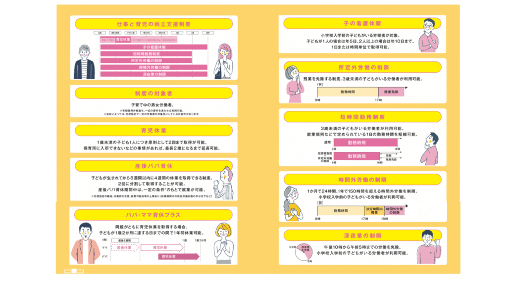 産後パパ育休やパパ・ママ育休プラスなど様々な制度があります。