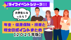【ライフイベントシリーズ①】大学生になったら?年金・健康保険・扶養と税金のポイントまとめ【2025... お子さんが大学生になると、アルバイトを始めたり、20歳を迎えて年金加入の対象になったりと、社会保険や税金との関わり方が大きく変わります。 「親の扶養のままで大丈...