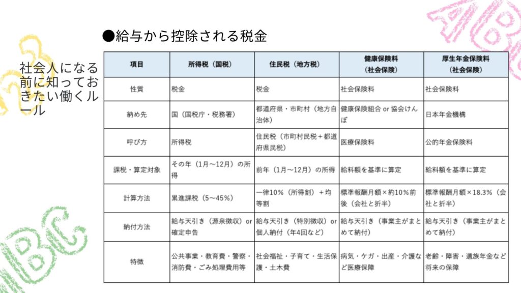給与から控除される税金について