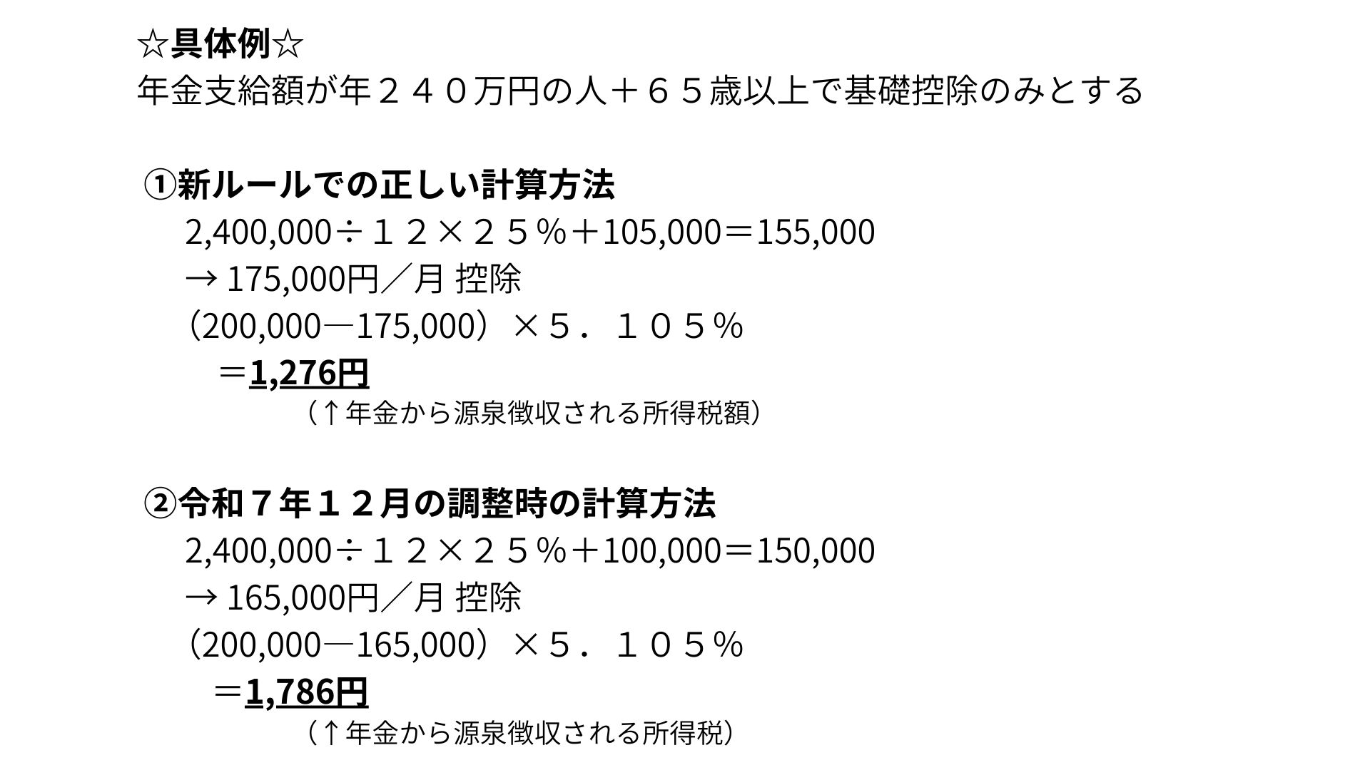 源泉徴収税額 = (年金支給額 − 社会保険料 − 各種控除額) × 5.105%