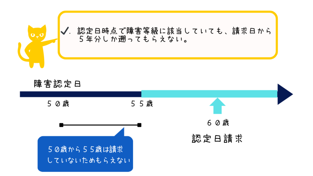 (障害認定日については1年6か月前になる特例あり) - 遡って請求可能