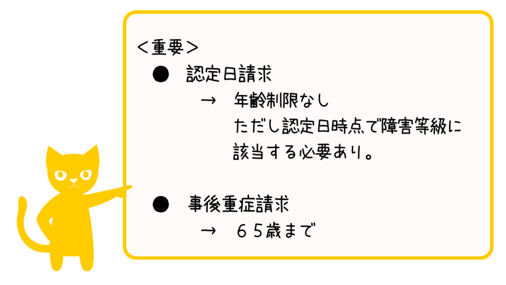 - 障害認定日に障害等級に該当していれば何歳からでも請求可能