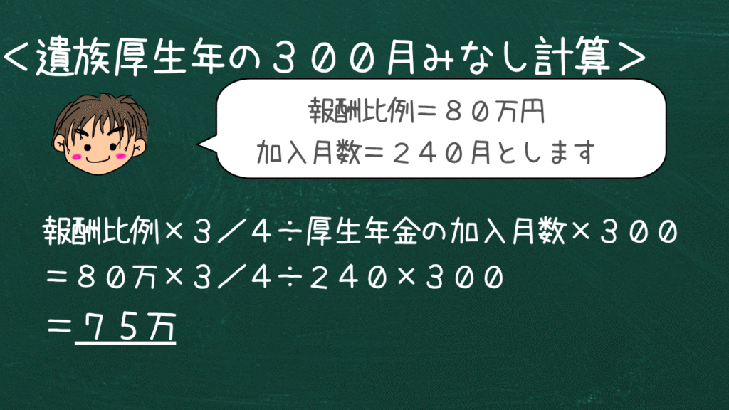 短期要件(要件1️⃣〜3️⃣)に該当する場合は、厚生年金の被保険者期間が300月(25年)未満の場合は、300月とみなして計算します。